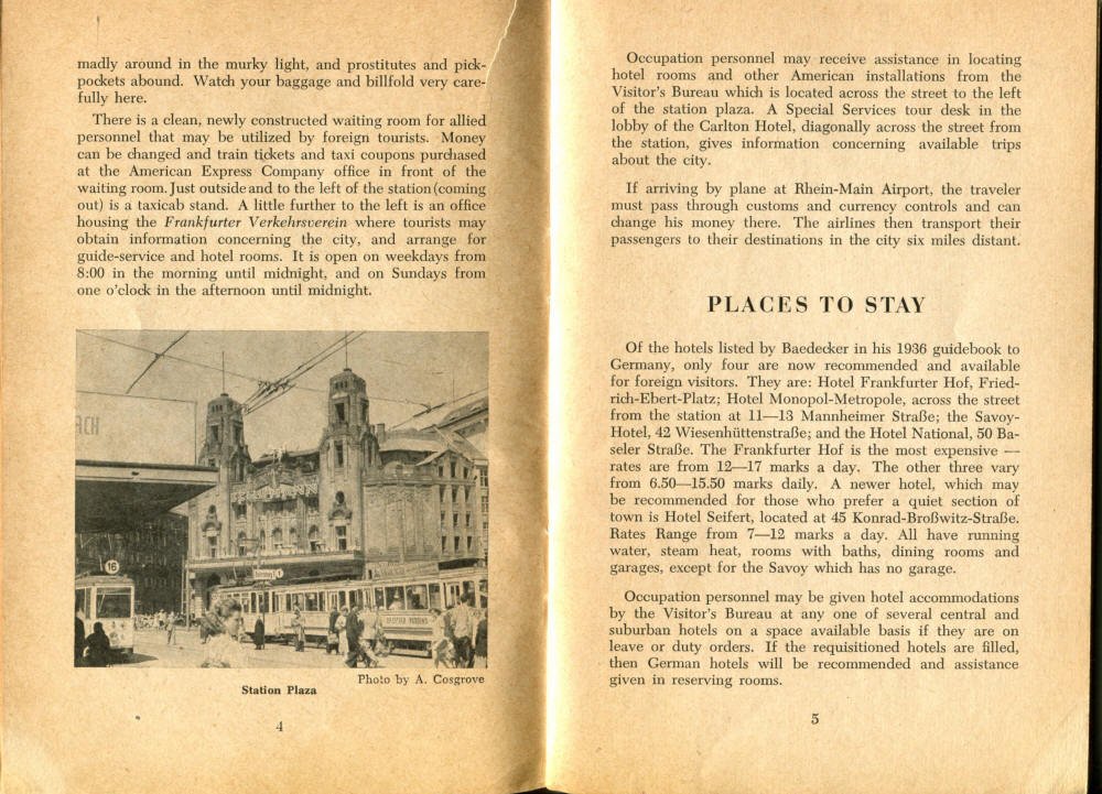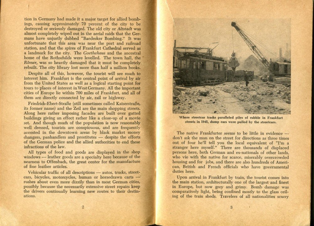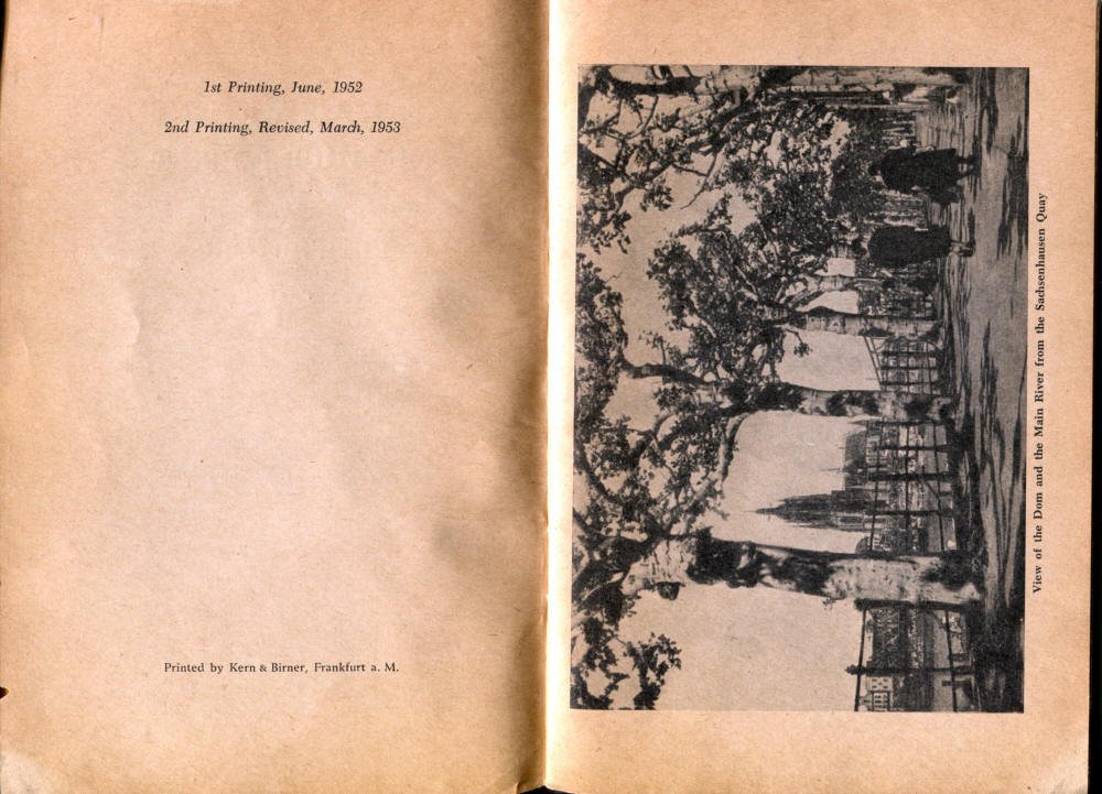 Pocket by Ruth Rutledge, 1953 A Guide to Frankfurt and Hesse for U. S. Personnel FFM USFET Book 1946/47 TIP June 1959 TWIG April 4-10, 1965 TWIG Sept. 1-15, 1969 SGT G.I. Crows' Eye View of Frankfurt AM & PM, 1954 FAHS/Frankfurt Publications