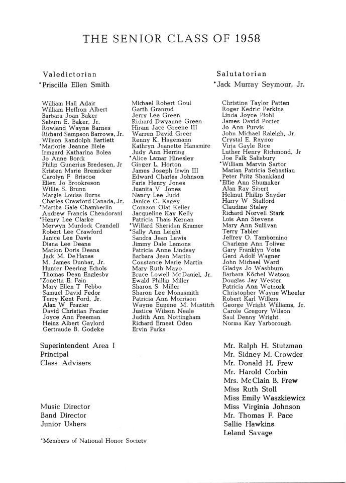 of 1958 '58 Yearbook '58 Alumni Yearbooks Class Pages 58 Facebook Album |