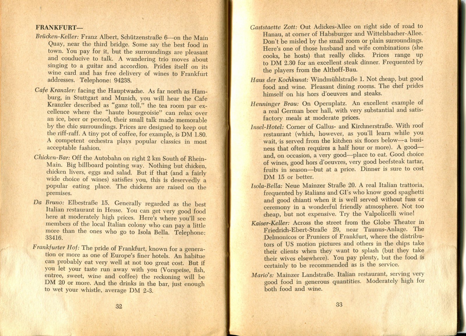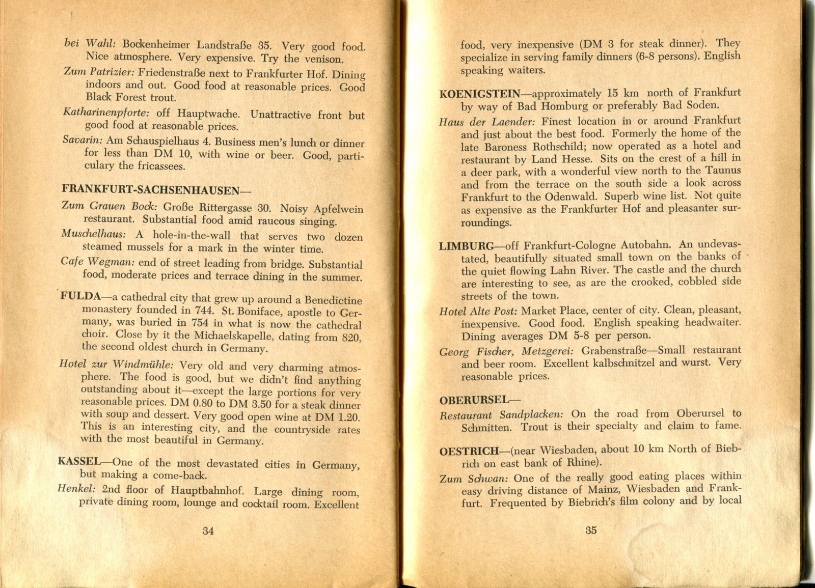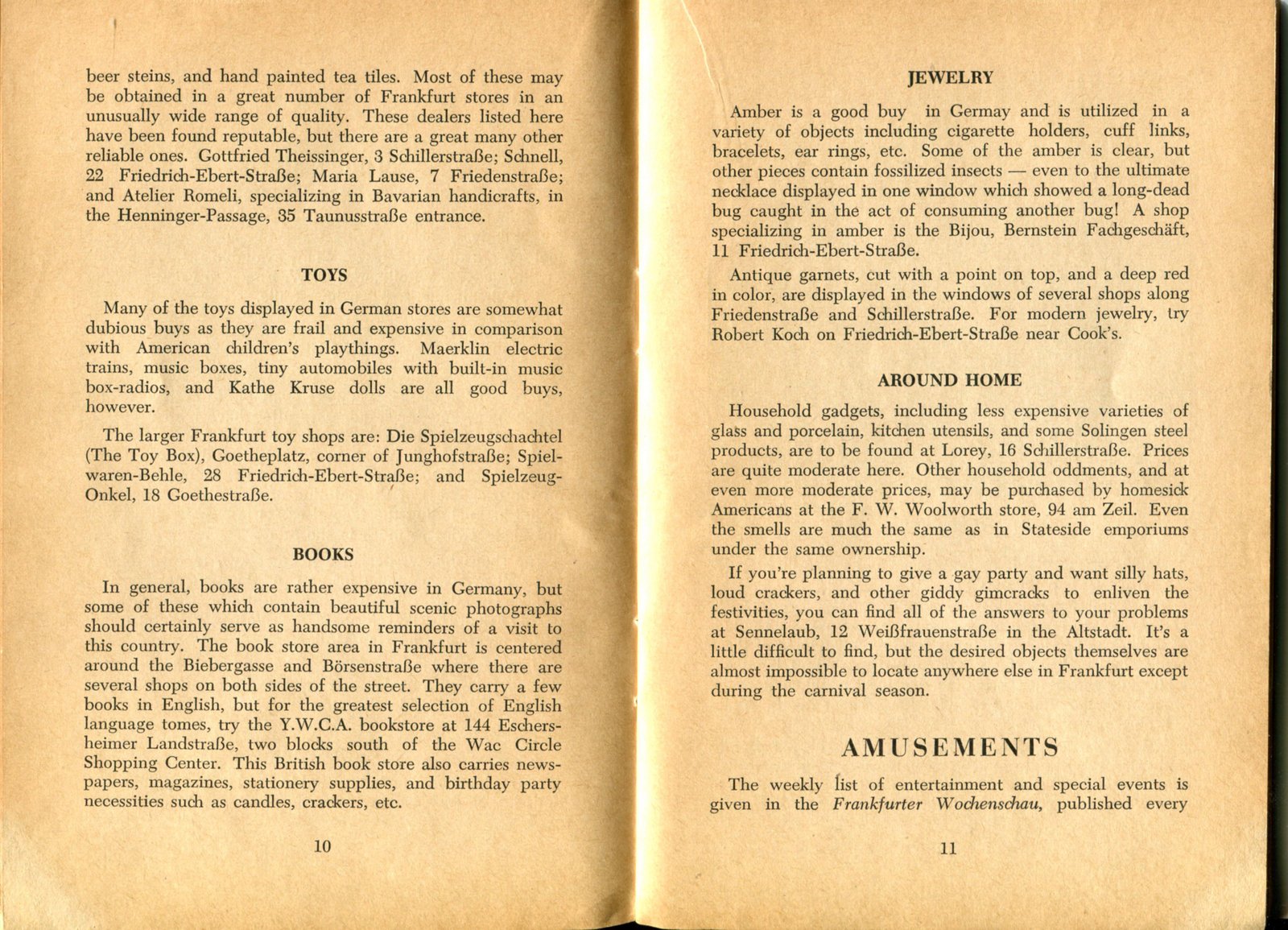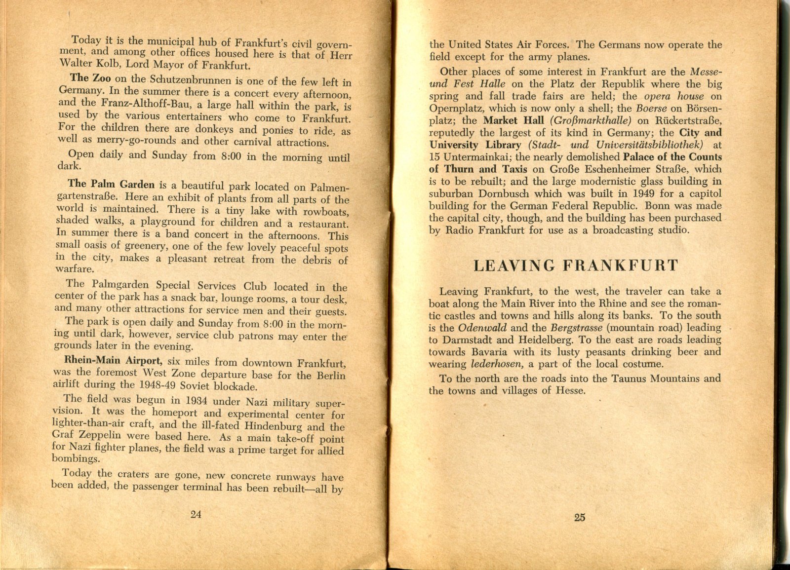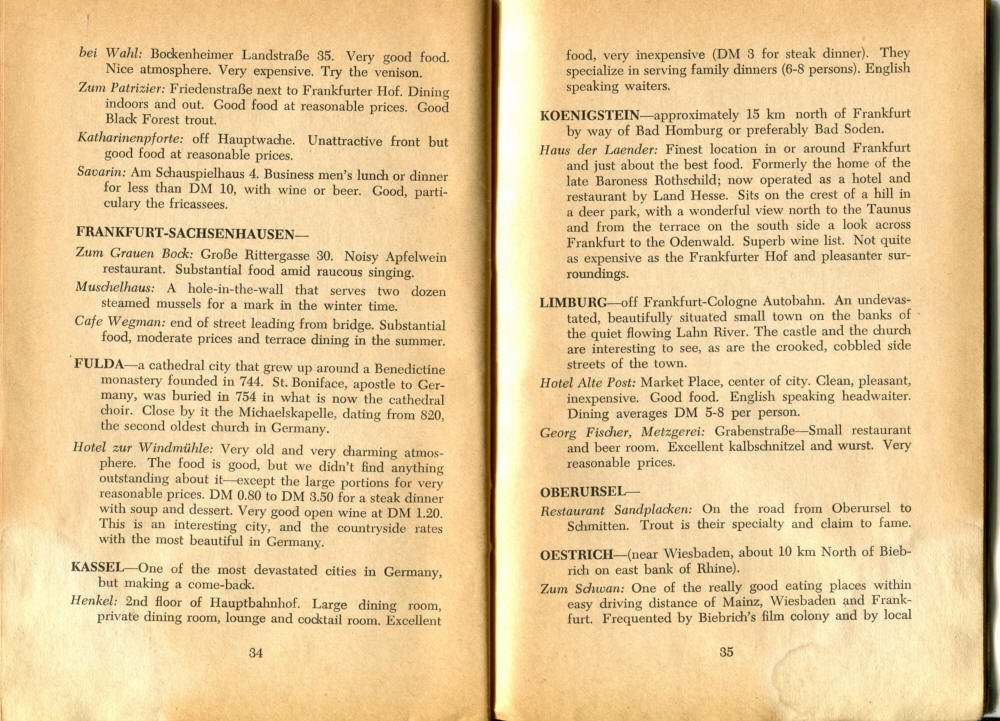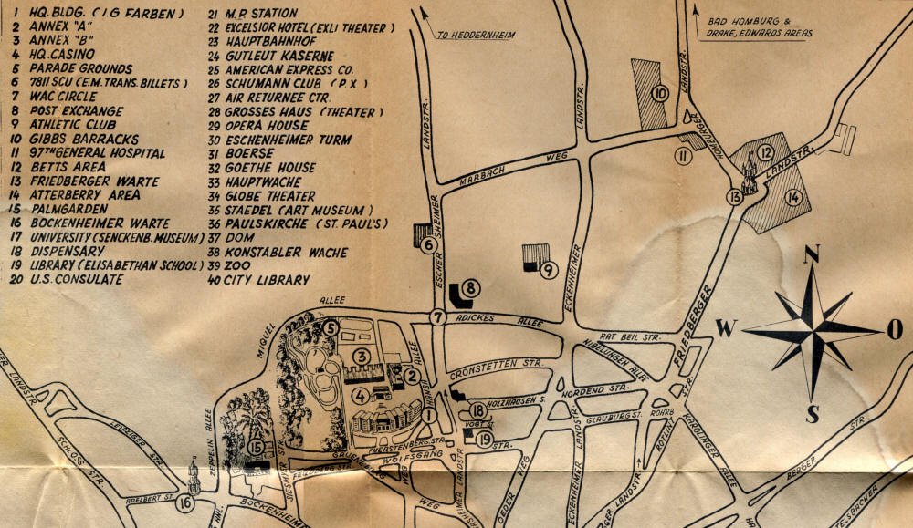 Pocket by Ruth Rutledge, 1953 A Guide to Frankfurt and Hesse for U. S. Personnel FFM USFET Book 1946/47 TIP June 1959 TWIG April 4-10, 1965 TWIG Sept. 1-15, 1969 SGT G.I. Crows' Eye View of Frankfurt AM & PM, 1954 FAHS/Frankfurt Publications