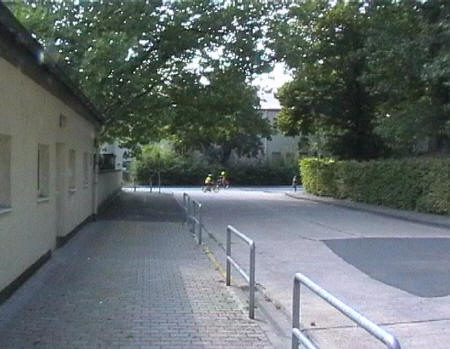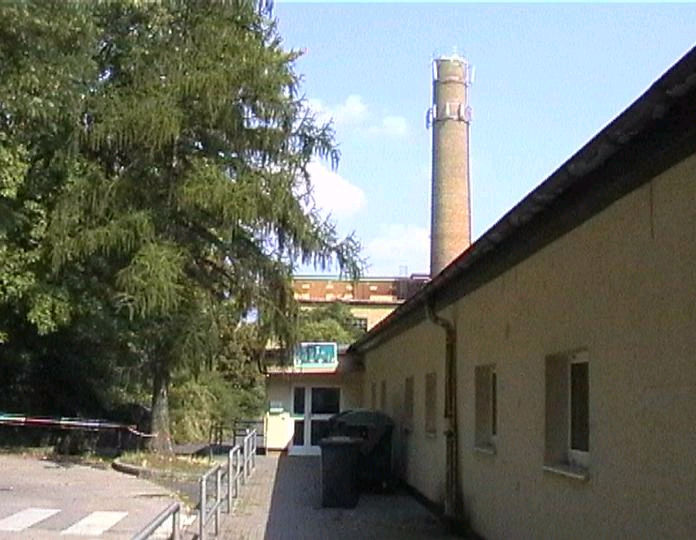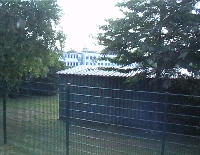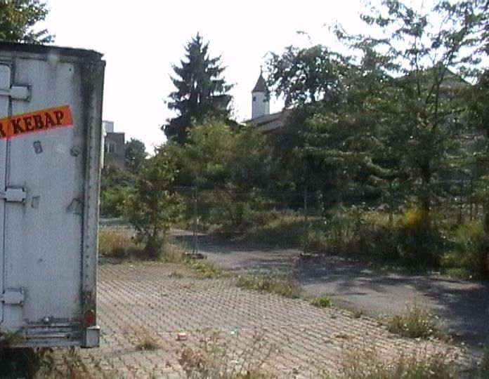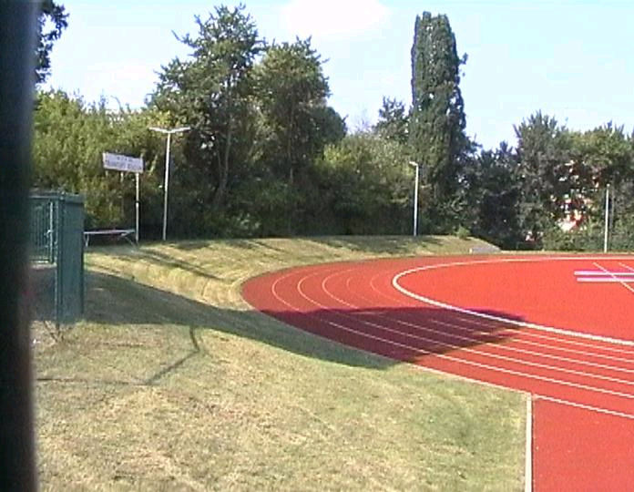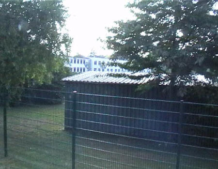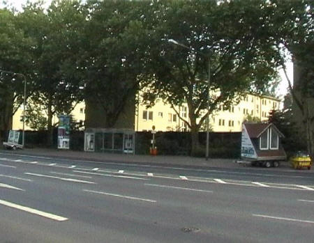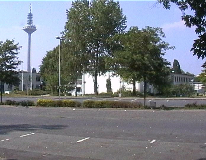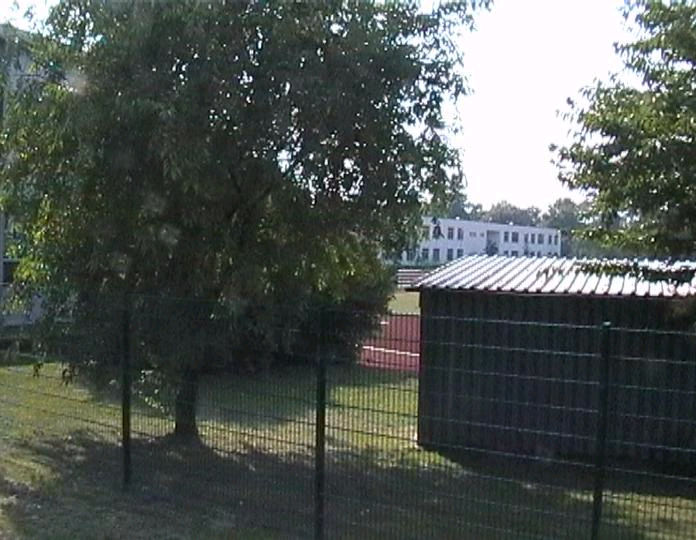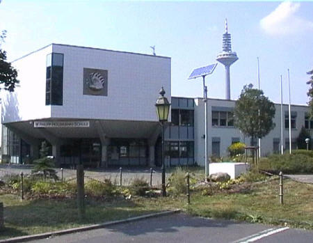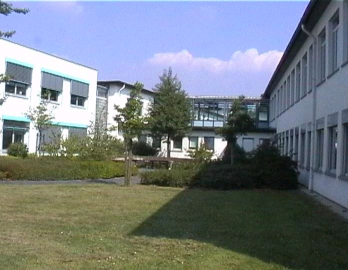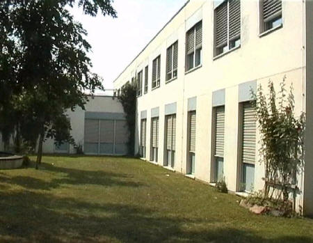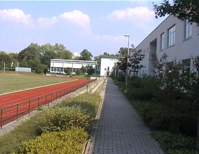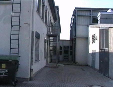 list when he posted the pictures: I want to share these pictures of the High School with all of you. On the Saturday of Aug. 25 I went down to the High School after over 30 years. It was hard to recognize the old school since it has been redone. It is now a German school where the EAGLE still files on the entrance and in the stadium. Across from the High School is the IDLE HOUR and the church which are in a jungle of trees and shrubs. It was very sad for me to see all of this. The IG FARBEN Building is being prepared for the University of Frankfurt. Anything between the school and the IG Farben is "no mans land" and is fenced in. The houses across the street are partially inhabited by Germans the rest of the houses are empty. The PX has been torn down, a German Polizei Station is there now. In fact all of Frankfurt has lost it's American bases and housing areas. Hanau still has a high school and all of the housing areas are still in use. |