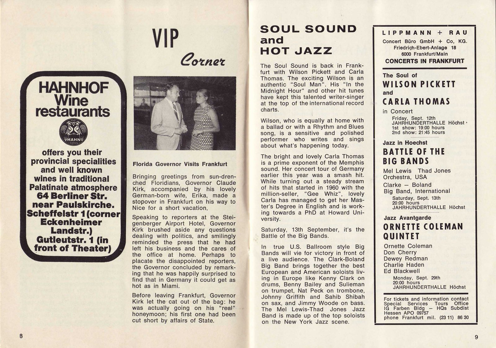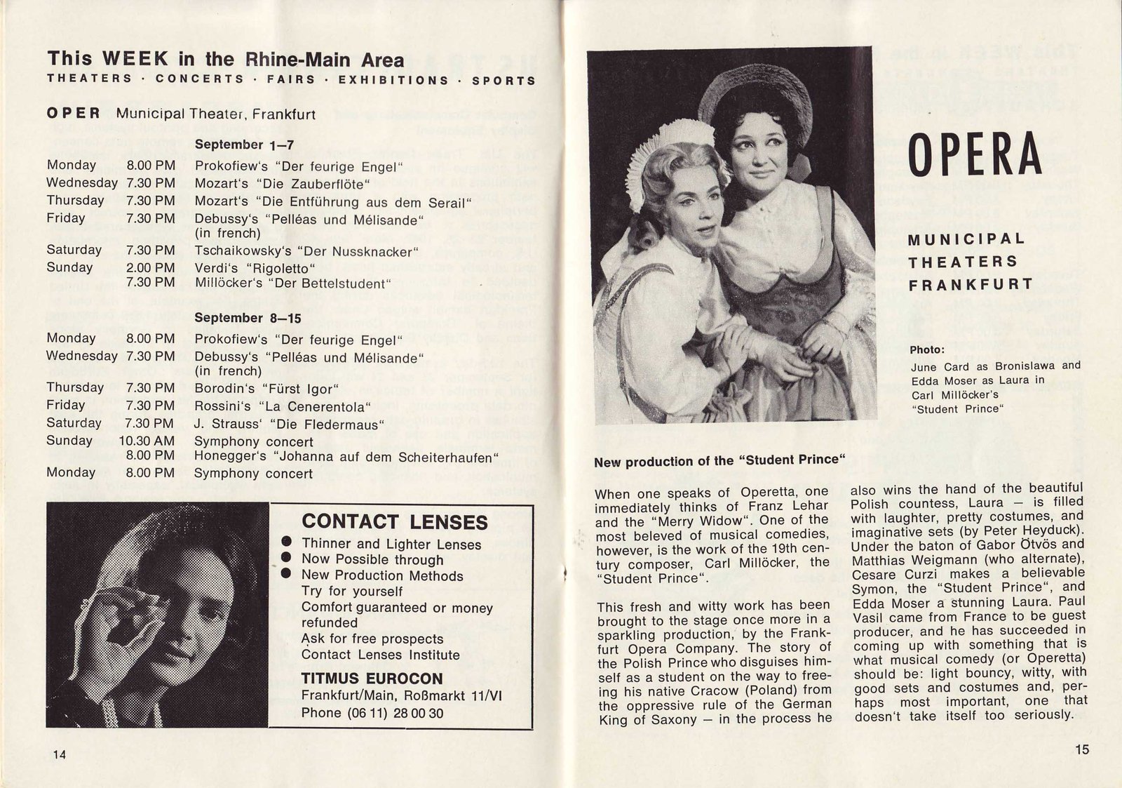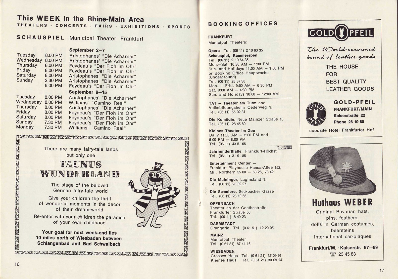 | pp12,13 --Concerts, Clubs, Computers | pp14,15 -- Symphony Opera | pp16,17 -- Theater, Taunus Wundeland |