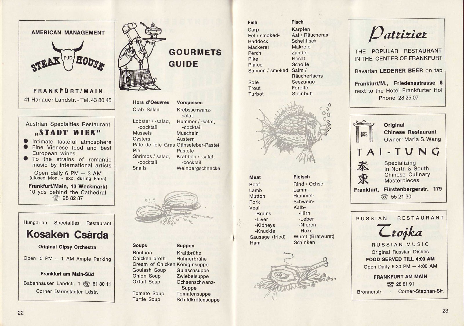 | pp18,19 -- Sightseeing | pp20,21 -- Sightseeing, Hotels | pp22,23 -- Restaurants, Gourmet Guide |