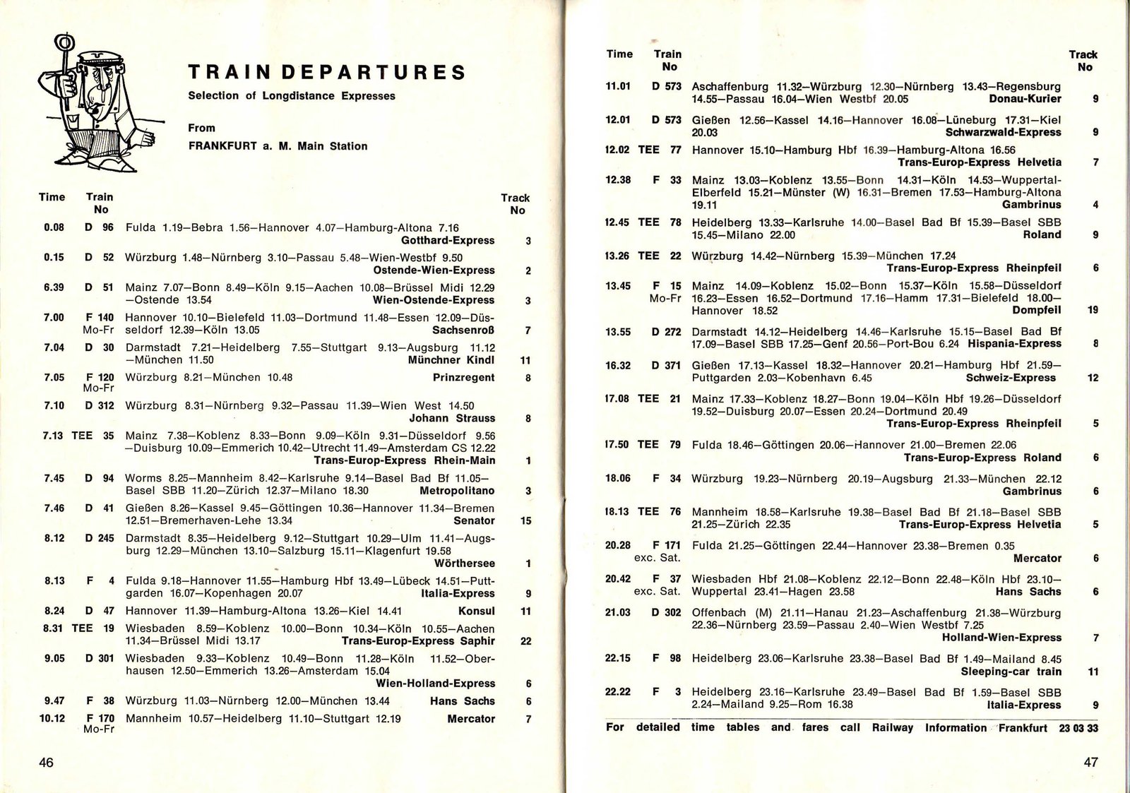 | pp42,43 -- Airline Schedules | pp44,45 -- Consulates, Tourist Offices | pp46,47 -- Train Departures |