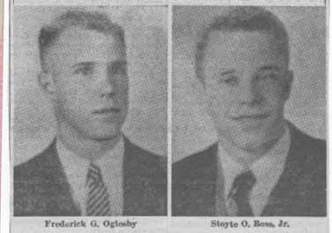 June 1, 1957 (from Jim Selander '59) The dormitories were named for Frederick Oglesby and Stoyte Ross, Jr. who died in a kayaking accident on the Main river on June , 1957. | |||||