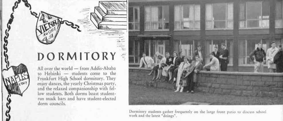 (geral.martin@gmx.de), Sent: Thu 10/29/09 Before it (Alte Oper) was rebuilt, a student from the Dorm fell down a flight of rotten stairs one late night/ Early morning. I received a telephone call to bring rope and help him get out of a pool of water. I arrived sometime near 2AM and the two guys who were with him helped to get him out. They were not students from my classes. He had a twisted ankle, and the next morning reported in for 'sick call' from the Dorm. I learned that they had a way of 'escaping' by sliding down light mast , located near one of the rooms. My question is WHO were they. as I have forgotten their names???" Those were the days." - Jerry Martin |