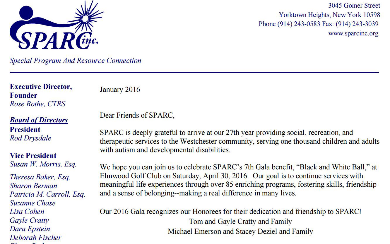 Friends: Tom, Jason, Jennifer and I are being honored at SPARC's annual
