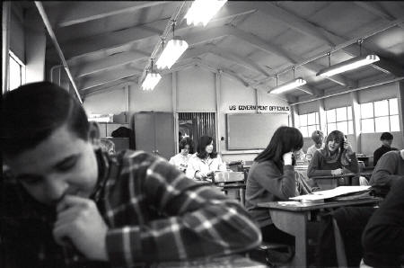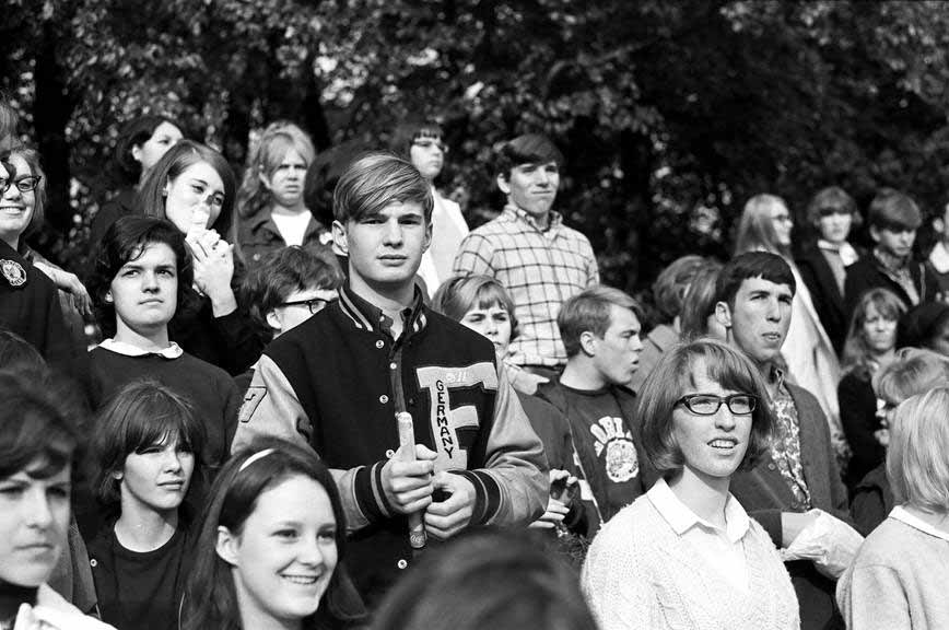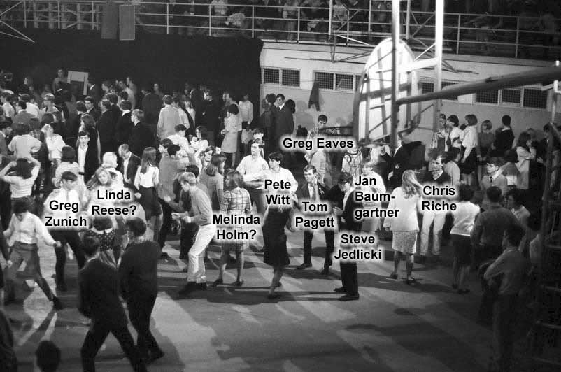 is Carol Harris. -Zody Blond in letterman jacket is Glen Lloyd. Starting L-R Behind him (on his right) is Candy Parrish, Girl with glasses: Betty Weaver. Blond: Paula Price. Next, Mike Major, Dark hair: Greg Eaves. Blond in profile, looking left, I think, is Jan Turro. In front of Mike and Greg is Janice Bain (wearing glasses) Girl behind Candy is Ayse Bayat. Behind Ayse, I'm pretty sure, is Kathy Cooney. All of these are 1967 grads. -Mary I. |