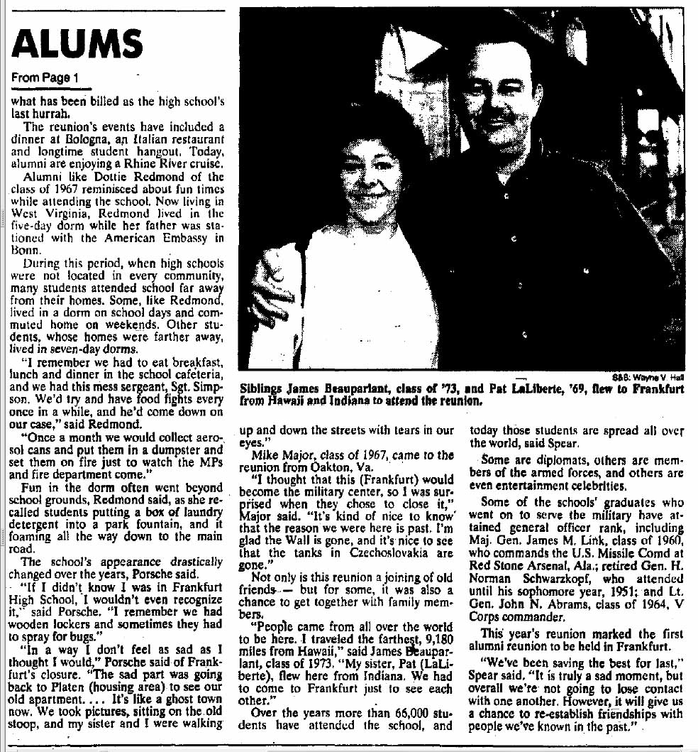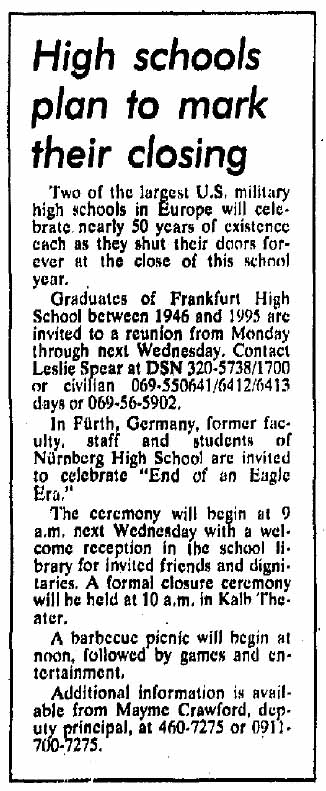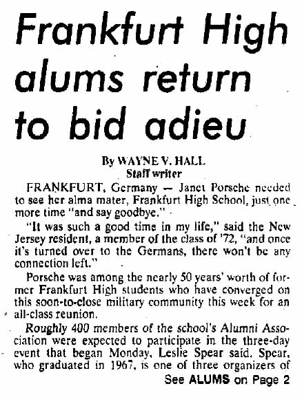 Frankfurt American High School History 1946-1995 Yearbooks Memorabilia FAHS Wikipedia Page Alumni Search |