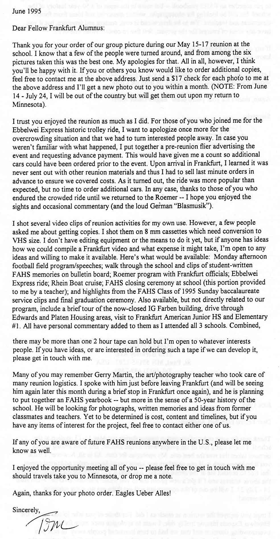 In 1995, I attended the all class reunion in Frankfurt, and as part of my
