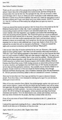 Mary! Seems I get misty over the littlest things these day :] But I sure hate that 'Jerry' (sorry, he'll always be MR. Martin to me) won't be making our 40th. Hope he realizes this is also the 40th anniversary of the biggest skip in FHS history.....ROSENMONTAG 1970! I am attaching a copy of one his flyers that helped us get the word out. It is in color but so weak my scanner can't pick it up. I will be bringing the original to Nawlens along with the Train schedule, Mainz map, all courtesy of Mr. Martin's covert, burning of the midnight-oil, clandestine activities to help us get the holiday HE knew we deserved. Always THERE for us!!!!! Also have the original Absentee list, courtesy of Mr. Messier, with the names of 546 students who were out sick that day......LOLOLOLOLOL Are these the best memories or what? Dutch, Apr 23, 2010 |