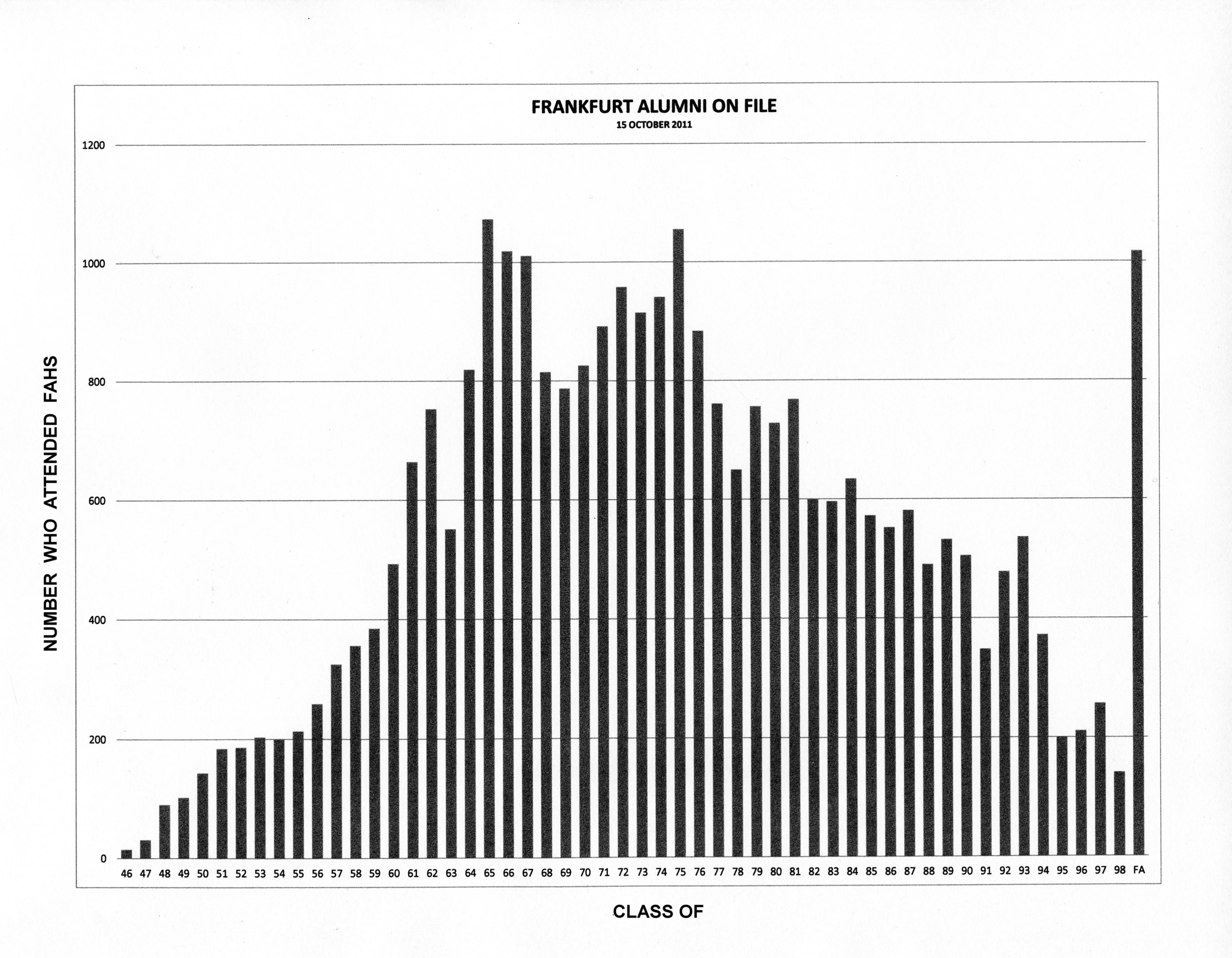 Number of Students Attending FAHS One or More of Their HS Years From Allen Monamith '61 (Note: Because of parents reassignments, number of attending is about 3X those at FAHS at graduation.) |